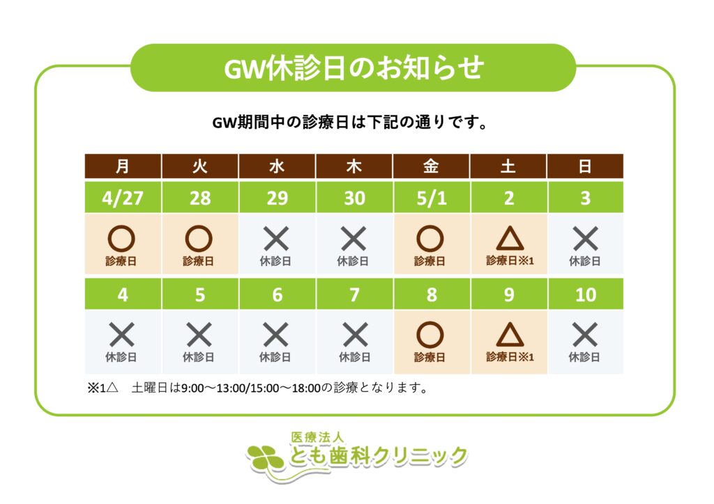 休診日:4月29日(水)・30日(木)・5月3日(日)〜7日(木)